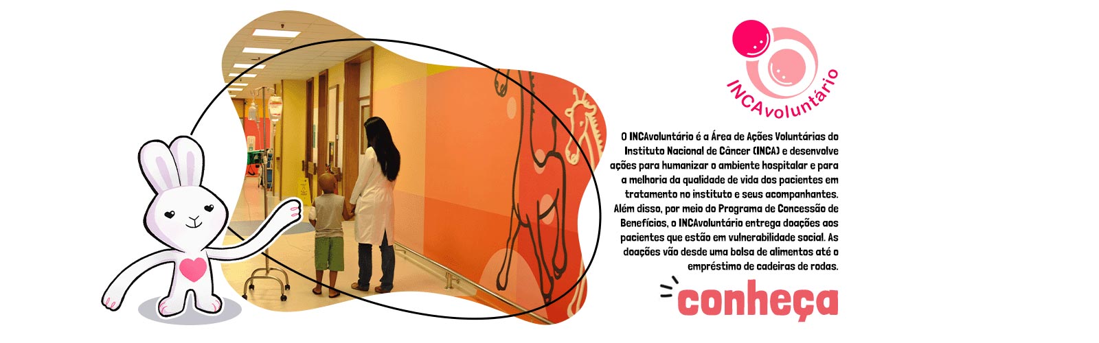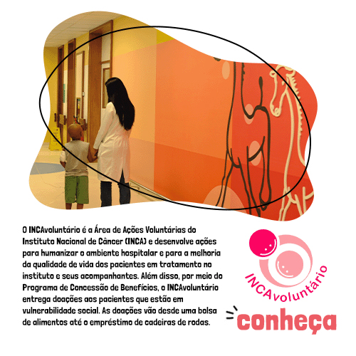 O INCAvoluntário é a Área de Ações Voluntárias do Instituto Nacional de Câncer (INCA) e desenvolve ações para humanizar o ambiente hospitalar e para a melhoria da qualidade de vida dos pacientes em tratamento no instituto e seus acompanhantes. Além disso, por meio do Programa de Concessão de Benefícios, o INCAvoluntário entrega doações aos pacientes que estão em vulnerabilidade social. As doações vão desde uma bolsa de alimentos até o empréstimo de cadeiras de rodas.