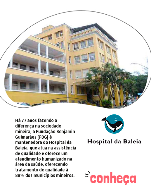 Há 77 anos fazendo a diferença na sociedade mineira, a Fundação Benjamin Guimarães (FBG) é mantenedora do Hospital da Baleia, que atua na assistência de qualidade e oferece um atendimento humanizado na área da saúde, oferecendo tratamento de qualidade à 88% dos municípios mineiros.
