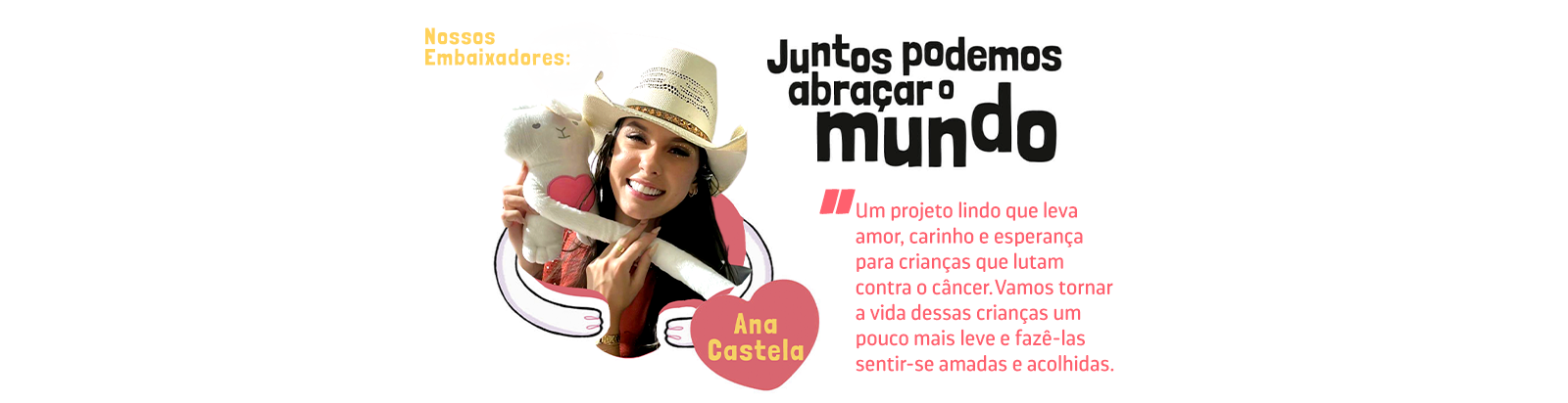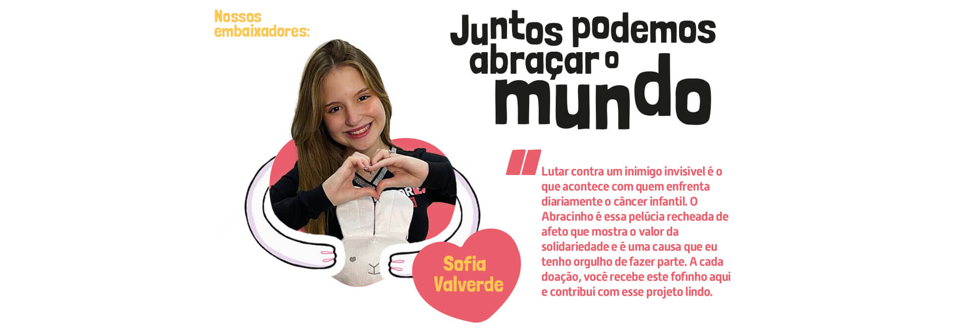 O Abracinho é um dos projetos da Instituto Best Wishes que nasceu para levar afeto em forma de agradecimento e viabilizar recursos para as grandes instituições do Brasil que atuam na linha de frente contra o câncer infantil, como: Hospital GRAACC, Hospital Erastinho, Hospital Napoleão, Hospital da Baleia, Instituto do Câncer Infantil, Hospital Martagão Gesteira, Hospital do Câncer de Mato Grosso, INCAvoluntario , Associação Abrace, PeterPan e Casa Durval. Através das doações realizadas, é possível direcionar a verba para a instituição que deseja abraçar e receber a nossa linda pelúcia em forma de gratidão. Juntos e de braços dados, podemos somar forças na luta contra o Câncer Infantil. Faça parte dessa corrente do bem e abrace você também a nossa causa
